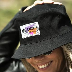 Black bucket hat, with Eudoxie logo patch on the front